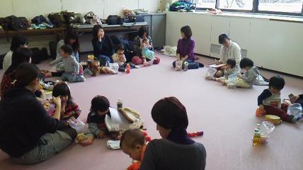 そして、最後は輪になってお菓子や昼食を食べつつ